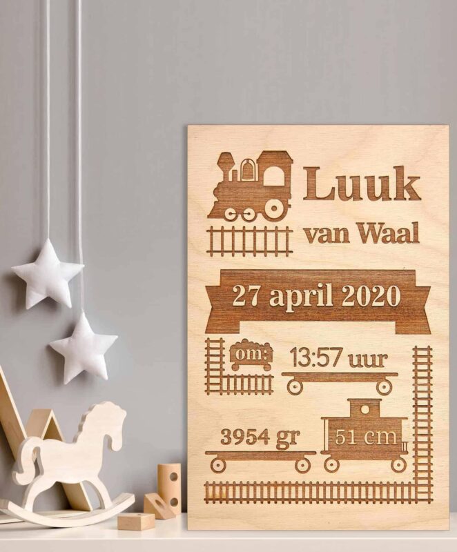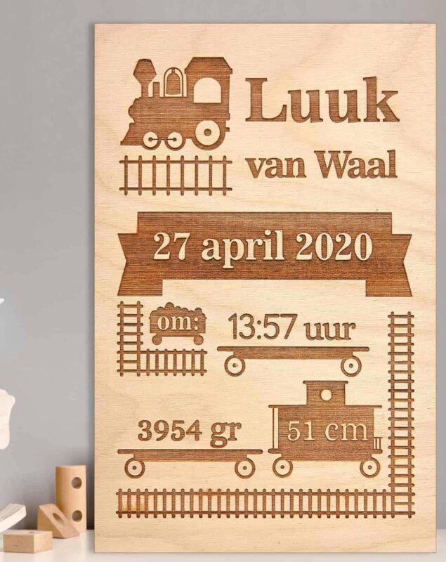 این استند اسم کودک با استفاده از متریال چوب روس با ضخامت ۳ میلیمتر ساخته شده است و ابعادی به طول ۲۰ سانتیمتر و ارتفاع ۲۸ سانتیمتر دارد. طراحی این استند به شکل قطار و ریل قطار انجام شده است که آن را به یک یادگاری خاص و جذاب تبدیل میکند.