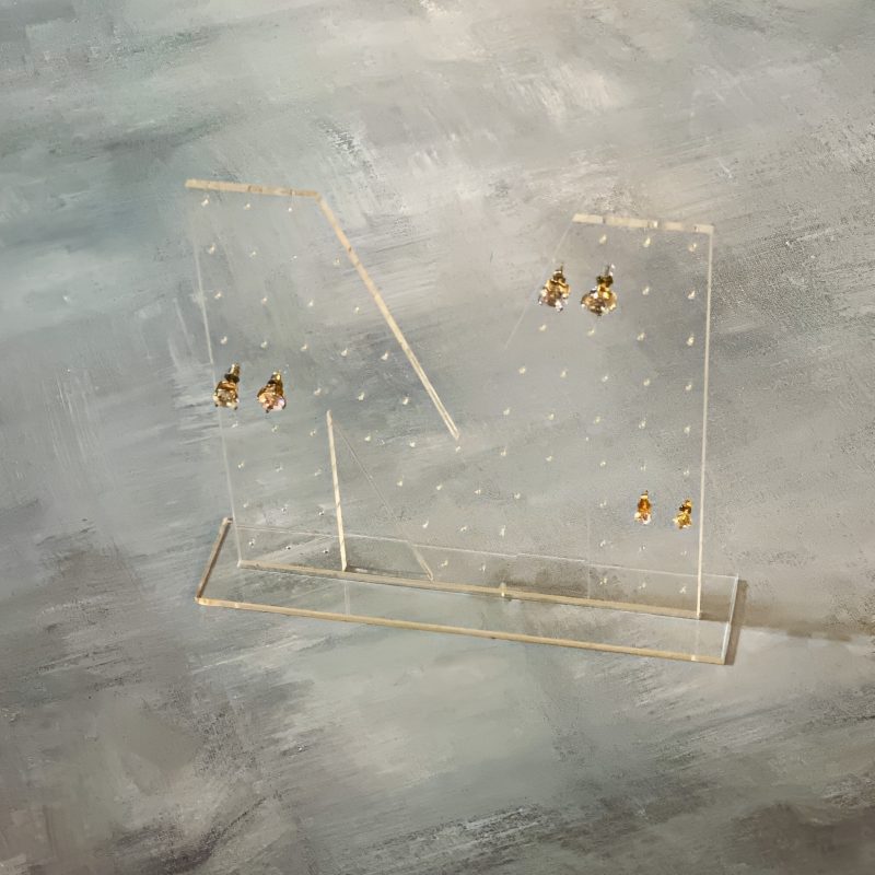 هر استند دارای چندین جفت سوراخ برای نگهداری از انواع گوشواره ها است. برای حمل و نگهداری آسان می توان این استند گوشواره پلکسی را از هم جدا کرد.