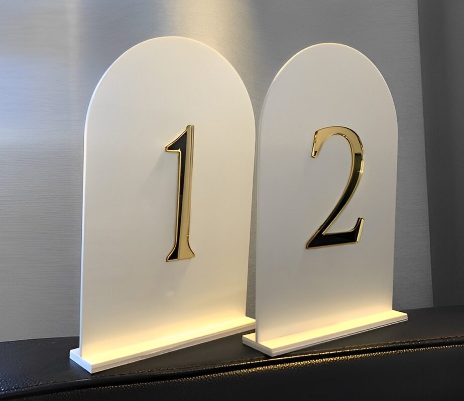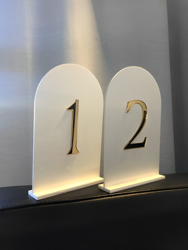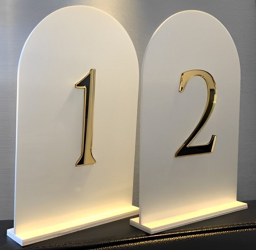 برای این که در مهمانی هایی مانند عقد و عروسی و جشن تولد بتوانید میهمانان تان را به راحتی به سمت میزهای تدارک دیده شده راهنمایی کنید بهتر است از استند شماره میز مدل TH_48615 طرح و هنر استفاده کنید. این محصول در فرم مستطیل طراحی شده؛ اما در قسمت بالای آن از یک قوس زیبا استفاده شده و اعداد روی آن به رنگ طلایی در روی استند شماره میز پلکسی ثبت شده اند.