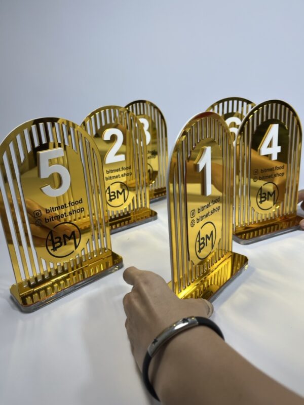 آیا هنوز برای میز های رستوران یا کافه ی خود شماره میز تعیین نکرده اید و با روش های قدیمی سفارش میگیرید و در سفارش ها اشتباه میشود ؟ آیا هنوز از کاغذ های و استند های بی کیفیت برای شماره میز استفاده میکنید؟ ما با یک استند جذاب و شیک این مشکل شمارا حل کرده ایم کافیست این استند را سفارش دهید و هم از آن روش های قدیمی و خسته کننده خلاص شوید هم نظم و جذابیت را به دکوراسیون خود اضافه کنید.