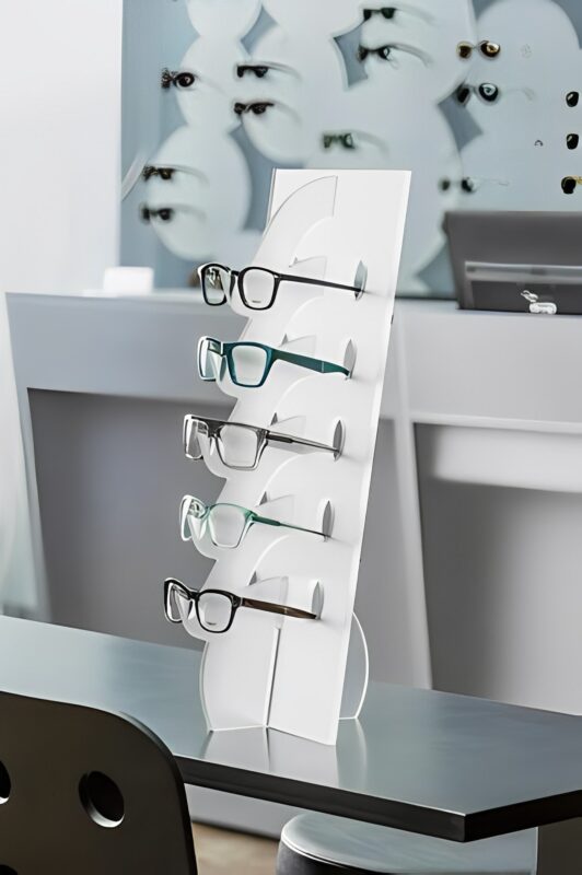 – استفاده به عنوان رومیزی: طراحی شیک و جمع و جور این استند امکان قرار دادن آن بر روی میز کار یا میز در فروشگاهها را به شما میدهد. اینجاست که عینکها به عنوان یک تزئینی زیبا و موثر به نمایش درآمده و همچنین به صورت دسترسی سریع برای مشتریان قرار دارند.