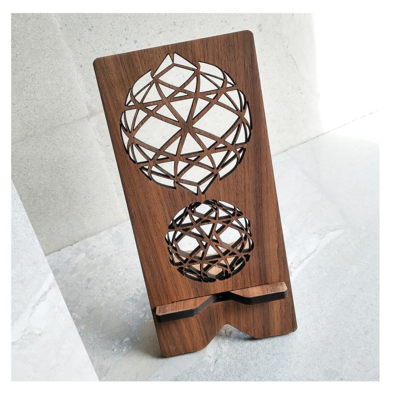 استند موبایل با متریال چوب mdf با ضخامت ۶ میلی متر حکاکی با طرح هندسی و برش لیزری شده که هم زیبایی خاصی به میز کار شما خواهد داد و هم نگهدارنده مقاومی برای گوشی شما خواهد بود.