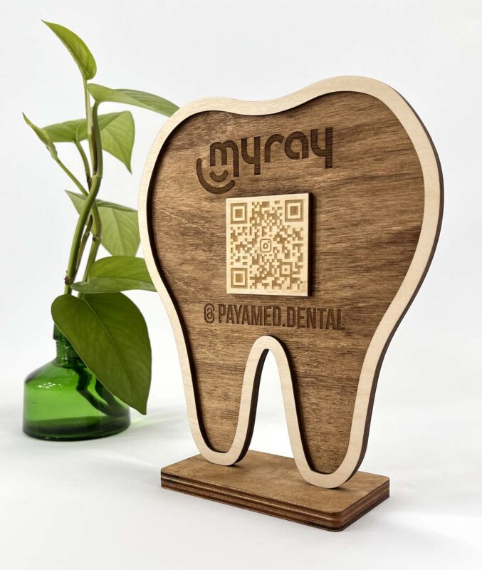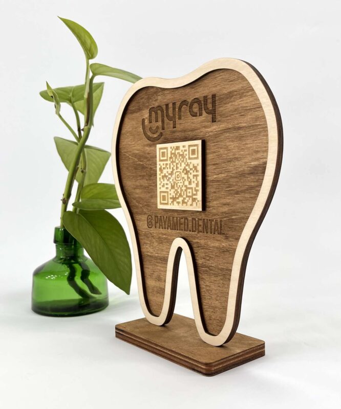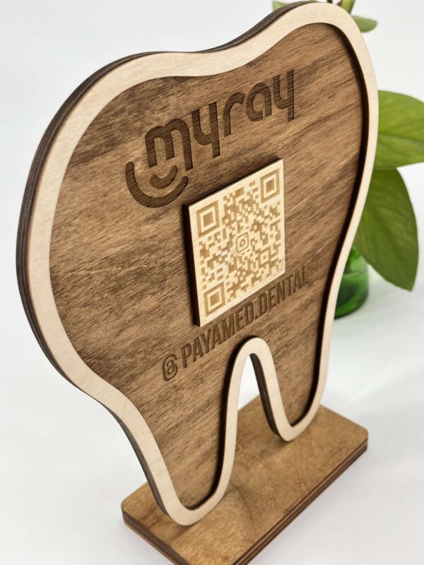 استند کیو آر کد طرح دندان مدل TH_43648، یک محصول جذاب و کاربردی است که به منظور استفاده در مطبهای دندانپزشکی طراحی شده است. این استند با متریال چوب سه لایه روسی ساخته شده و با رنگ پسزمینه چوبی، جلوهای طبیعی و زیبا به فضای مطب شما میبخشد. طرح دندان این استند نه تنها به دکوراسیون مطب شما زیبایی میبخشد، بلکه به عنوان یک ابزار تبلیغاتی موثر نیز عمل میکند.🦷