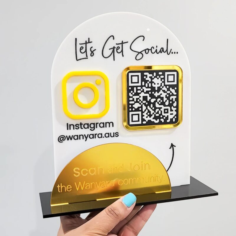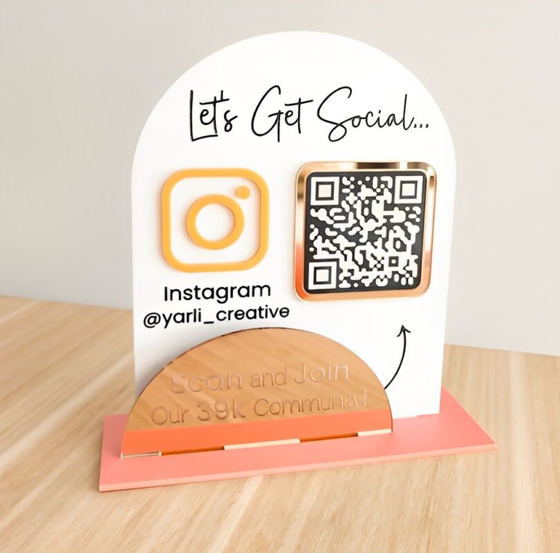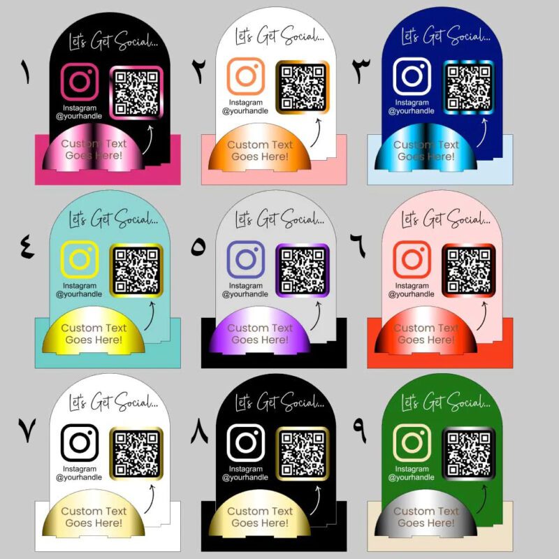 یکی از بزرگترین مزیت هایی که این استند کیو آر کد پلکسی دارد این است که دارای یک کد QR حکاکی شده است و فرد با اسکن آن مستقیماً به حساب اینستاگرام و یا سایر شبکه های اجتماعی تان وصل می شود، شما هم می توانید کیو آر کد مورد نظرتان را در روی آن داشته باشید. فقط کافیست یکی از 11 طرح موجود در سایت را انتخاب کنید و عکس QR Code مورد نظرتان را در باکس قرار داده شده در سایت وارد کنید تا محصولی که به دست تان می رسد به صورت کاملا شخصی سازی شده باشد.