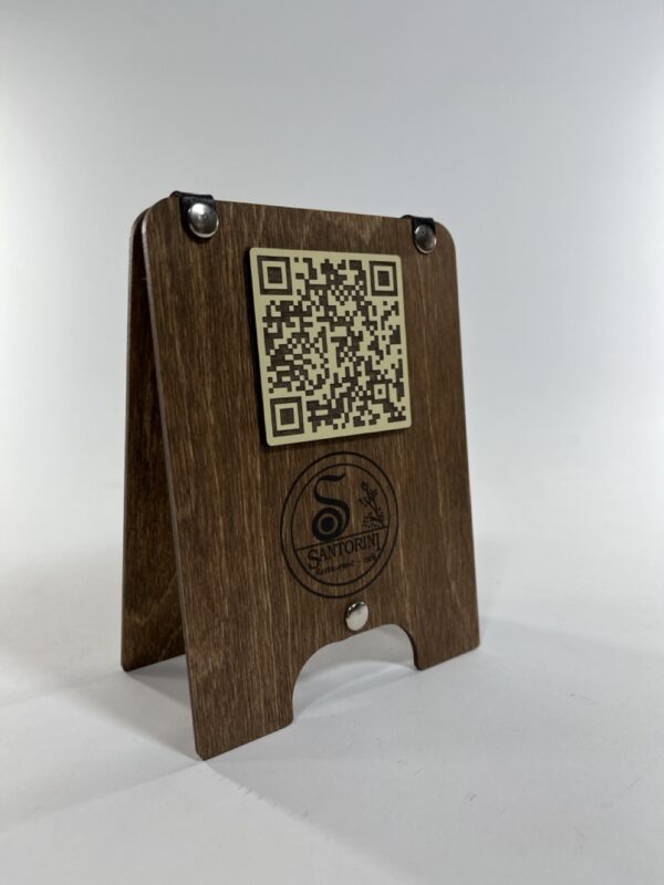 استند کیو آر کد مدل TH_19769 یک استند رومیزی چوبی است که مشتری با اسکن QR کد روی آن به صفحه فرود تان که ممکن است شامل وب سایت، لینک شبکه اجتماعی، اطلاعات تماس و یا صفحه پرداخت تان باشد هدایت می شود.