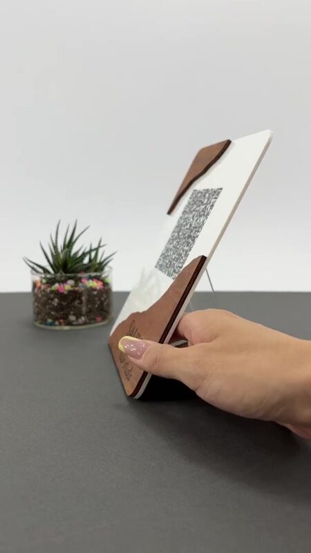 چه برای استفاده در آرایشگاهها، کافهها، گالریها یا بوتیکهای خاص، این استند یک انتخاب لوکس و خلاقانهست. طراحی ایستاده و زاویهدار اون باعث میشه QR کد خیلی راحت اسکن بشه. علاوهبراین، سبک بودنش باعث میشه بهراحتی قابل حمل باشه و هر جا که بخوای بتونی استفادهاش کنی.
