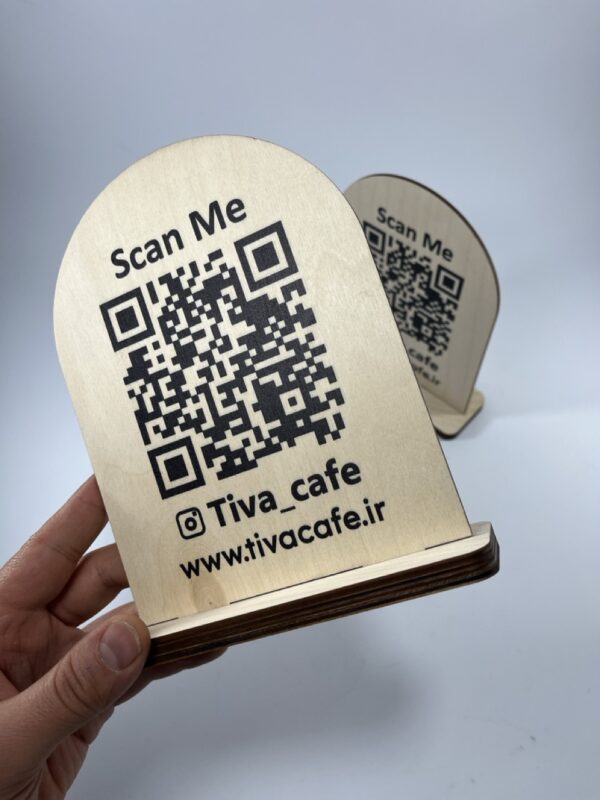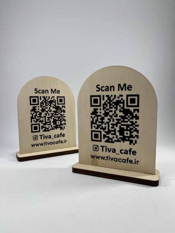 استند کیو آر کد مدل TH_54613 طرح و هنر از استند های ساده و خاصی است که به صورت قوس دار طراحی و تولید شده است و در روی آن یک عدد QR CODE قرار می گیرد. شما می توانید QR CODE مورد نظرتان را روی این استند کیو آر کد چوبی داشته و تا مشتریان و مراجعین تان بتوانند به راحتی با یک اسکن ساده به صفحه فرودی که هدف تان است هدایت شوند و به راحتی از خدماتی که دارید مطلع شوند.