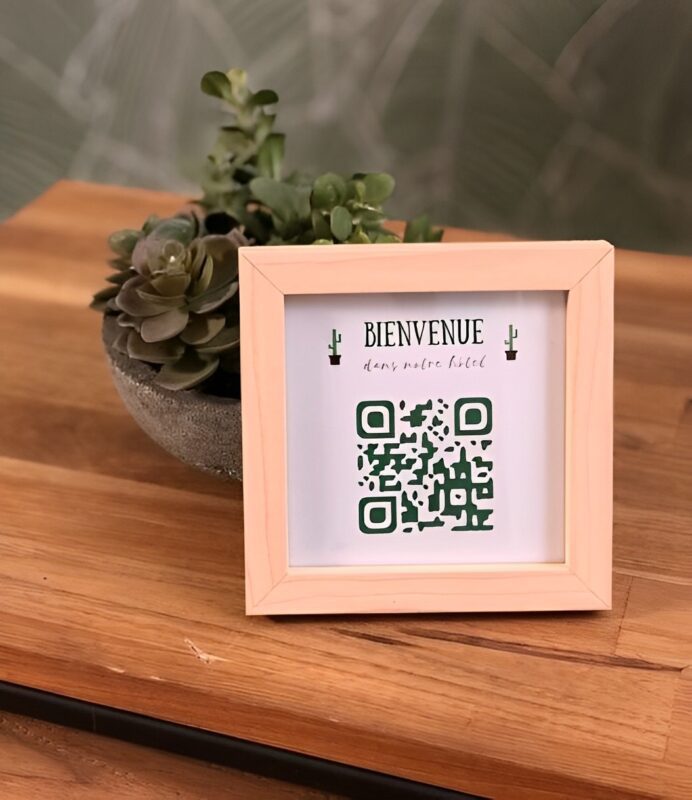 استند کیو آر کد مدل TH_73732 طرح و هنرکه به صورت یک قاب عکس شیک و زیبا طراحی و تولید شده است می تواند به عنوان یک اکسسوری تجاری تبلیغاتی در محل کارتان باشد. در روی این استند کیو آر کد چوبی لوگو برند و یا کسب و کارتان و همچنین یک عدد QR CODE از صفحه فرودی که مد نظر دارید قرار می گیرد. مطمئنا این استند QR CODE می تواند توجه همه را در یک لحظه به خودش مشغول کند و آن ها را به صفحه ای که مد نظر دارید بکشاند.