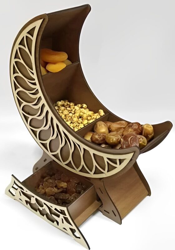 این جعبه پذیرایی چوبی با الهام از حلال ماه 🌘 طراحی و با گلبرگ های لوتوس تزیین شده است. می توانید انواع آجیل، میوه خشک و شکلات های تان را روی طبقات این باکس پذیرایی چوبی قرار دهید. برای این که جای کافی برای نگهداری از تنقلات تان داشته باشید هم یک کشو اضافی در روی این محصول تعبیه شده است.