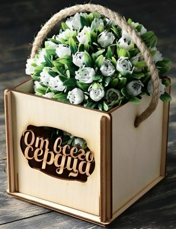 ✒️ حک متن مورد نظر: یکی از ویژگیهای جذاب این باکس گل چوبی، امکان حک متن مورد نظر بر روی گلدان آن است. این به شما امکان میدهد تا این باکس را شخصیسازی کنید و پیامهای خاصی را به عزیزان خود منتقل کنید.