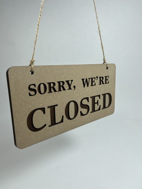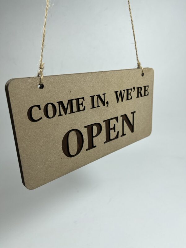 تابلو باز و بسته است مدل TH_49762 که یک تابلو آویز است به صورت سنتی و کلاسیک طراحی شده است این محصول بی شک می تواند نمای مغازه و یا محل کسب و کارتان را تحت تاثیر خودش قرار دهد. در قسمت جلوی این تابلو باز و بسته است چوبی جمله “Come in, we’re open” (بیا داخل، ما باز هستیم) و در طرف دیگر آن جمله “Sorry, we’re closed” (ببخشید، ما بسته ایم) به صورت برش لیزری قرار دارد.