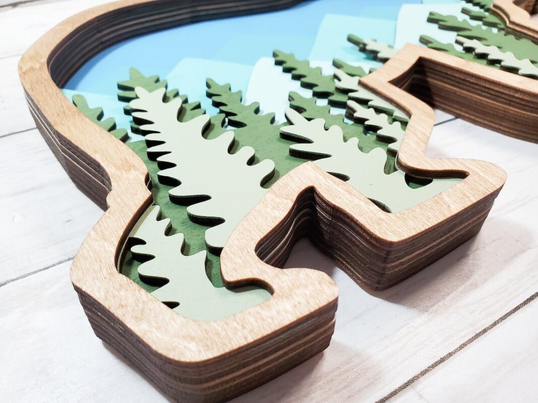 این تابلو دیواری با عنوان “تابلو دیواری خرس چندلایه مدل TH_36978 “، با متریال چوب سه لایه روسی، به طراحی ارگانیک و زیبای خرس با المانهای درخت، کوهها و آسمان آبی مجهز شده است. این اثر دیواری دکوراتیو، ایدهآل برای تزیین اتاق خواب، پذیرایی و فضاهای دیگر منزل شماست. همچنین، برای استفاده در کافهها و رستورانها نیز بسیار مناسب است.