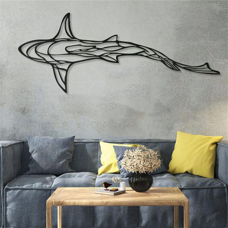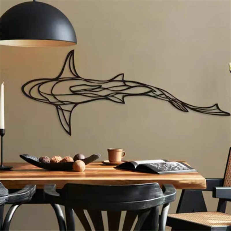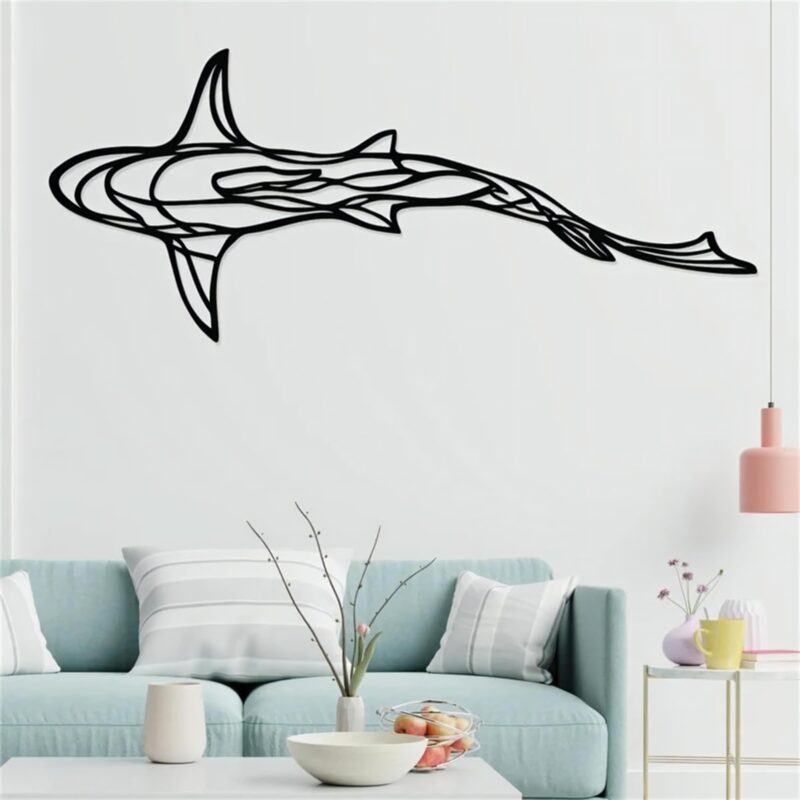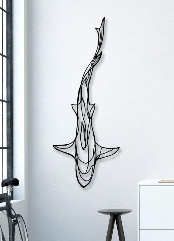 - طرح خطی کوسه:🦈 طراحی خاص و زیبایی با الهام از کوسه، تابلو را به یک اثر هنری تبدیل میکند.