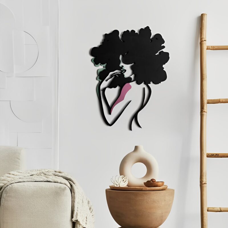 تابلو دیواری دختر مو فرفری مدل TH_87349 طرح و هنر محصولی با طراحی خاص است که به لطف ساختار لایه ای که دارد حس عمق را به بیننده القا می کند. این محصول با الهام از جنبش هنری مانند کوبیسم و هنر تک خطی یا سوررئالیسم تولید شده است.