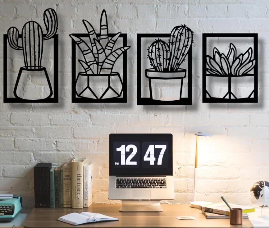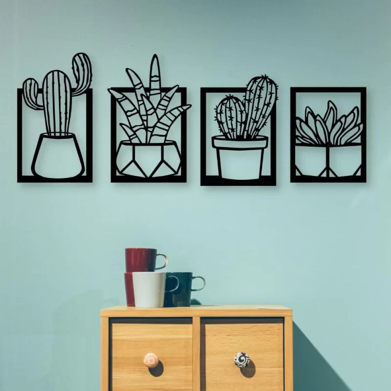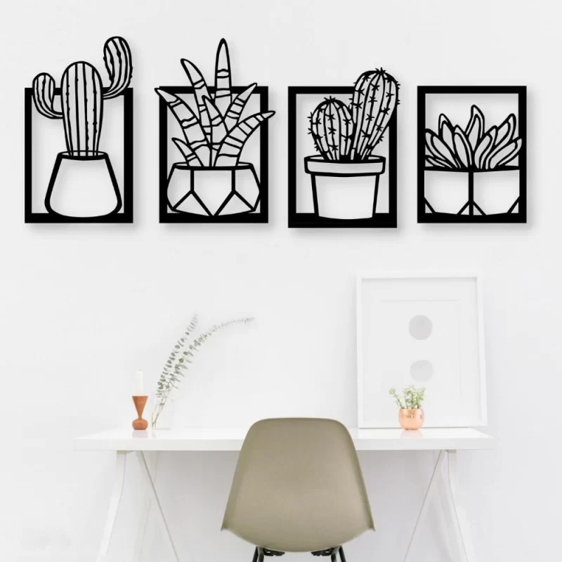 تابلو دیواری طرح کاکتوس از جنس ام دی اف سه میلی متری مشکی و به صورت 4 تکه بسته بندی میشوند به این مدل تابلو های دیواری دیوارکوب هم گفته میشود و میتوانید از این تابلو در اتاق خواب ، پذیرایی و آشپزخانه و دفاتر اداری نیز استفاده کرد