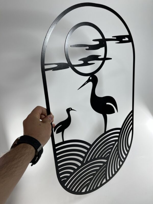 این تابلو دیواری دارای یک منظره زیبا و دلربا به همراه دو لک لک است و این محصول در فرم بیضی طراحی شده و برای تزیین انواع سبک های دکوراسیون مناسب است.