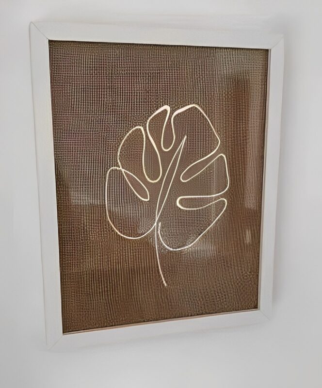 دنیای تان را با طرح های خاص و جذاب زیباتر کنید. طرح های خاص در خانه و محیط کار، به خودتان و اطرافیان تان انگیزه و انرژی می دهند. تابلو دیواری مدل TH_15734 طرح و هنر با الهام از برگ مانسترا طراحی و تولید شده است و می تواند زینت بخش همه محیط ها باشد. این تابلو دیواری پلکسی یک حس هنری خاص و جذاب به همراه دارد و با تک برگ مانسترا تزیین شده و دارای قاب چوبی سفید است.