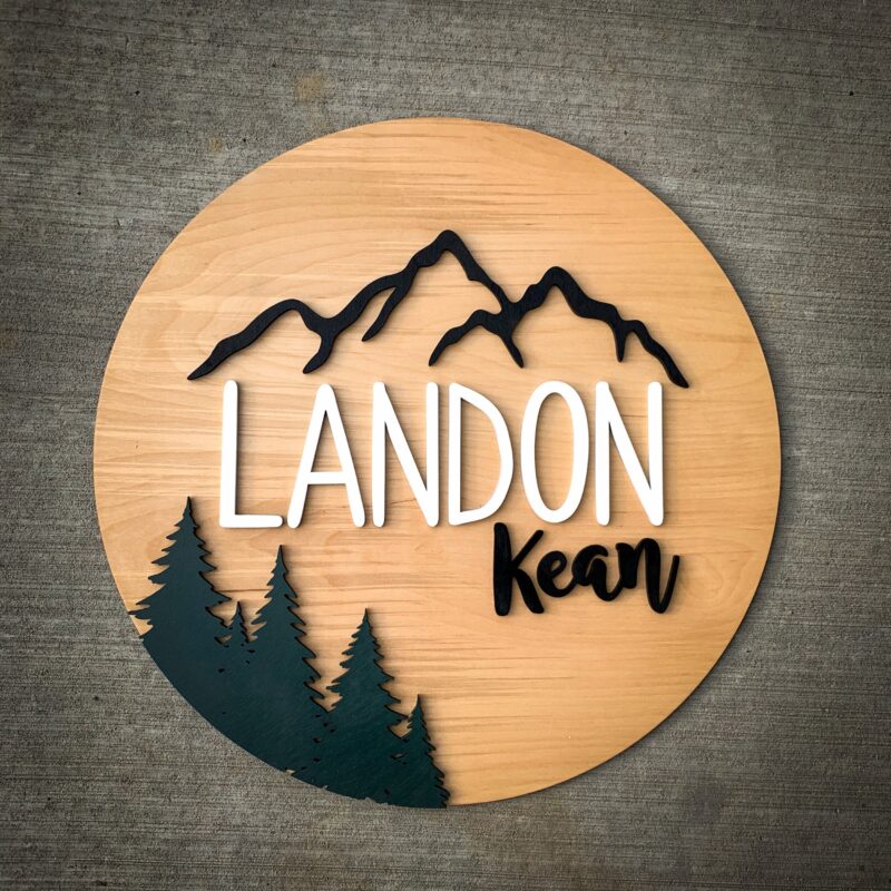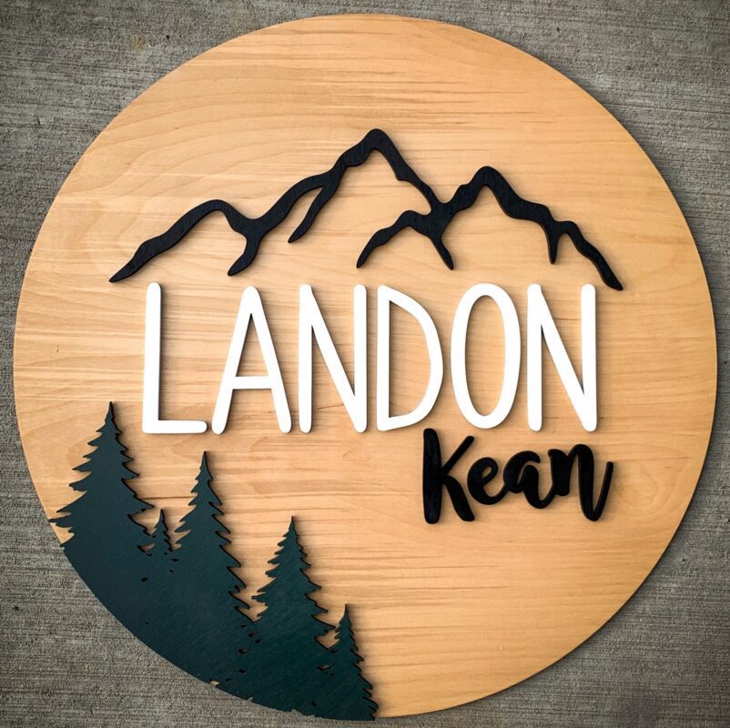 این تابلو دیواری چوبی در ابعاد دایره و با دو طرح و رنگ متفاوت طراحی شده و برای تزیین آن از المان کوه و درخت کاج استفاده شده است. در وسط آن یک متن کوتاه با نوشتار بزرگ و در پایین نوشته بالا هم یک متن کوتاه با نوشتار کوچک تر قرار می گیرد. البته شما می توانید نام خودتان، مغازه و یا برند تان را در روی این تابلو دیواری داشته باشید. فقط کافیست باکس قرار داده شده در سایت را پر کنید تا محصولی که به دست تان می رسد به صورت کاملا شخصی سازی شده باشد.