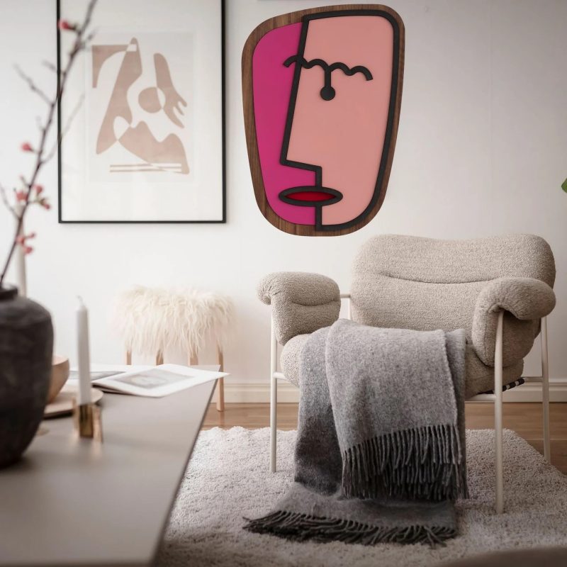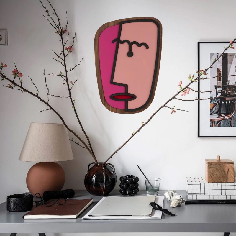 تابلو دیواری مدل TH_81858 یک ماسک چوبی تزیینی است که با الهام از آثار پیکاسو و سبک کوبیسم در فروشگاه طرح و هنر برای شما عزیزان طراحی و تولید شده است. ترکیب رنگ منحصر به فردی که در این تابلو دیواری چوبی به کار رفته است احساسات لطیف و ذوق هنری انسان را از اعماق وجود به سطح می آورد. می توانید این تابلو چوبی را به عنوان یک قطعه مستقل آویزان کنید و یا آن را با سایر آثار هنری ترکیب کنید. مطمئنا این ماسک دیواری مرکز توجه هر محیط خواهد بود.