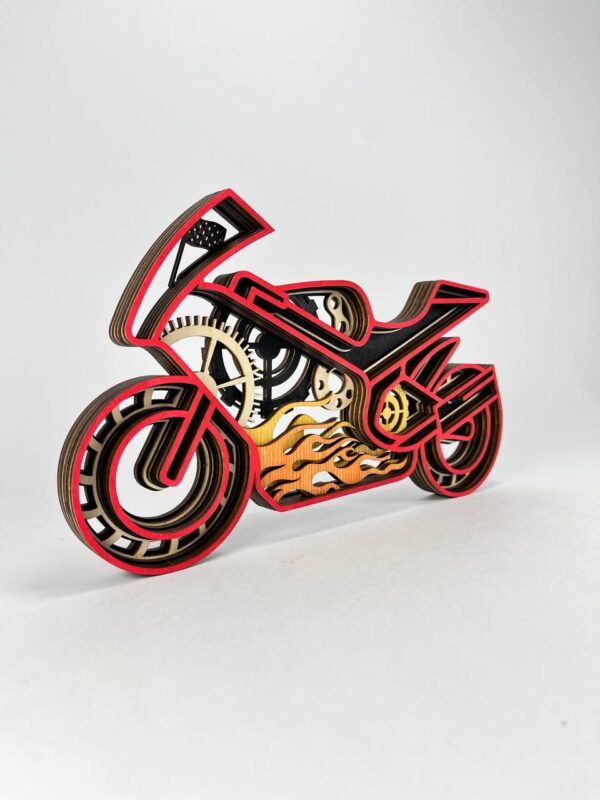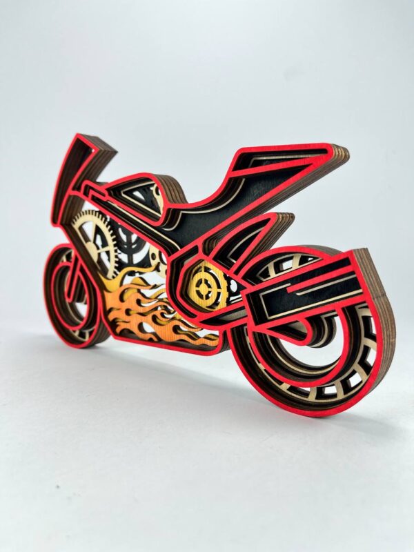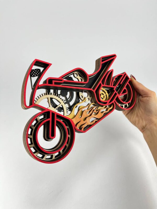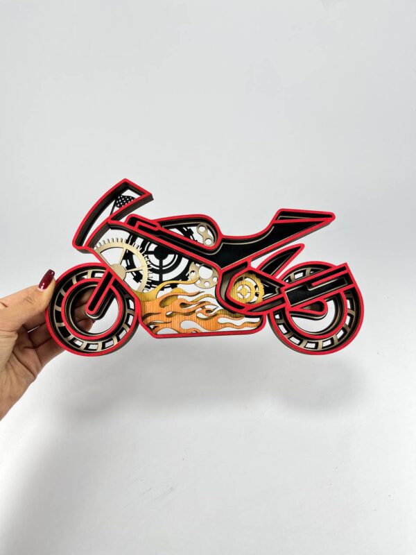 این تابلو با طراحی دقیق در فرم دینامیک موتورسیکلت، نه تنها یک شاهکار هنری است بلکه یک هدیه فوقالعاده برای علاقهمندان به موتورسیکلت و دکوراسیون منحصر به فرد نیز محسوب میشود.