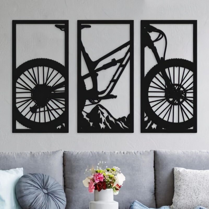 این محصول تابلویی با سه تکه ی جداست که با متریال عالی ام دی اف ساخته میشود و در نهایت با ابعاد 30 در 120 تحویل شما داده میشود . طراحی این تابلو به شکل دوچرخه است و با ظرافت و دقت بالا ساخته میشود .