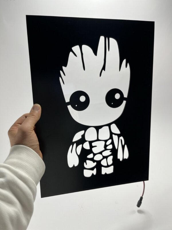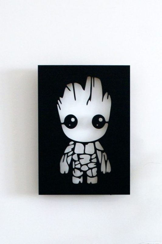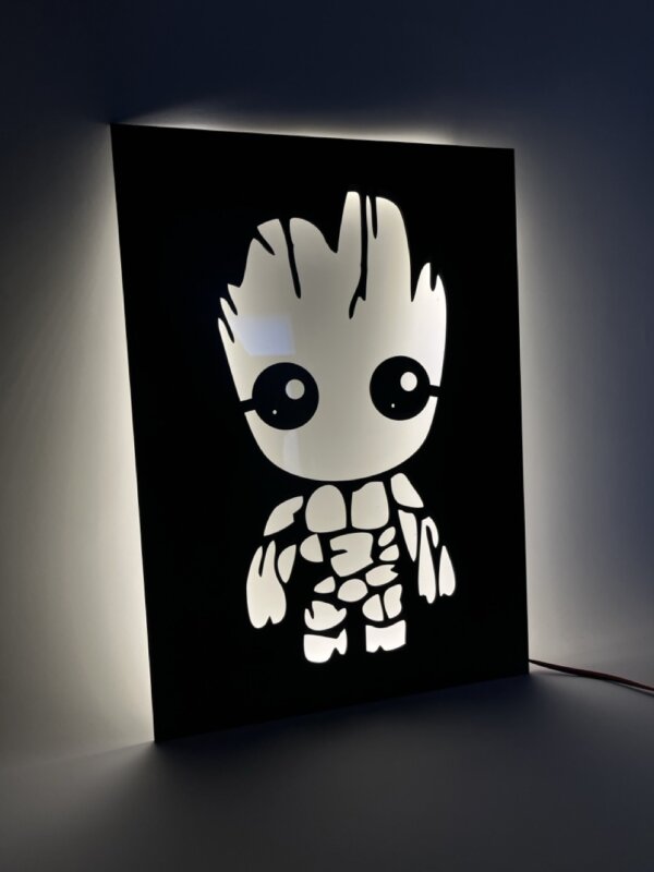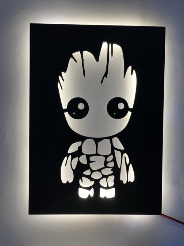 تابلو شبخواب گروت مدل TH_95255 طرح و هنر که با الهام از شخصیت گروت Groot که یکی از اعضای گروه نگهبانان کهکشان است، طراحی و تولید شده است. این تابلو شبخواب گروت چوبی نمای خانه تان را به شدت هیجان انگیز و جذاب می کند و احساس می کنید در یک سفینه فضایی در کنار او هستید و این موجود فرازمینی به شما می گوید «من گروت هستم».😍😍