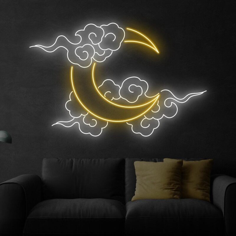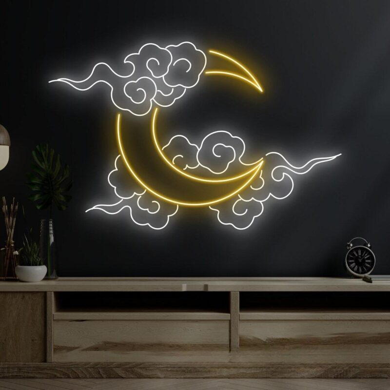 معرفی محصول تابلو نئون طرح ابر و ماه مدل TH_26757 🎨