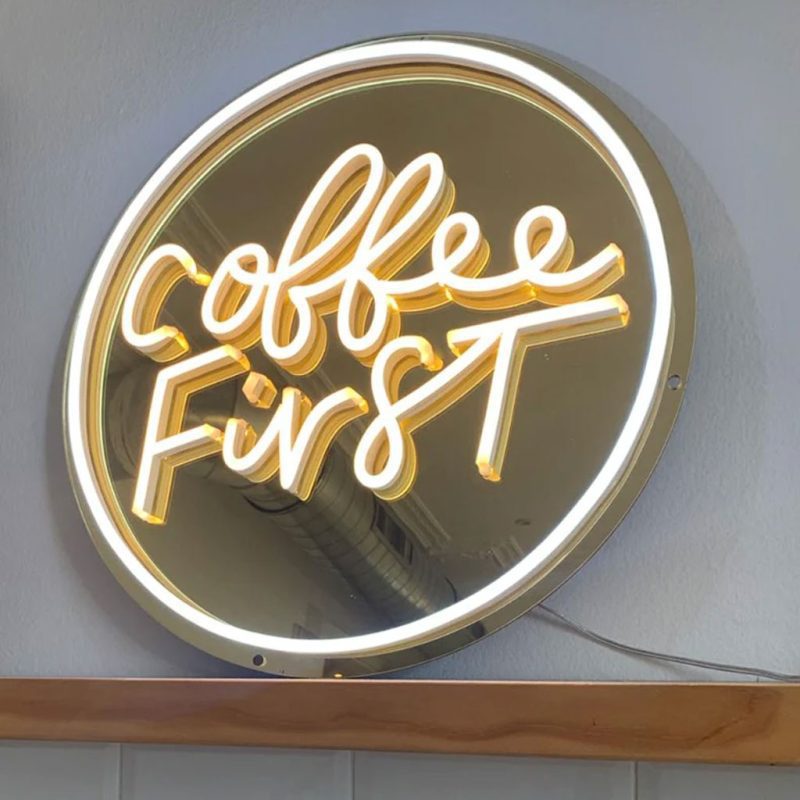 شما می توانید به جای عبارت coffee first نام مغازه، بوتیک و یا فروشگاه خود تان را به طور اختصاصی بر روی این تابلو داشته باشید.