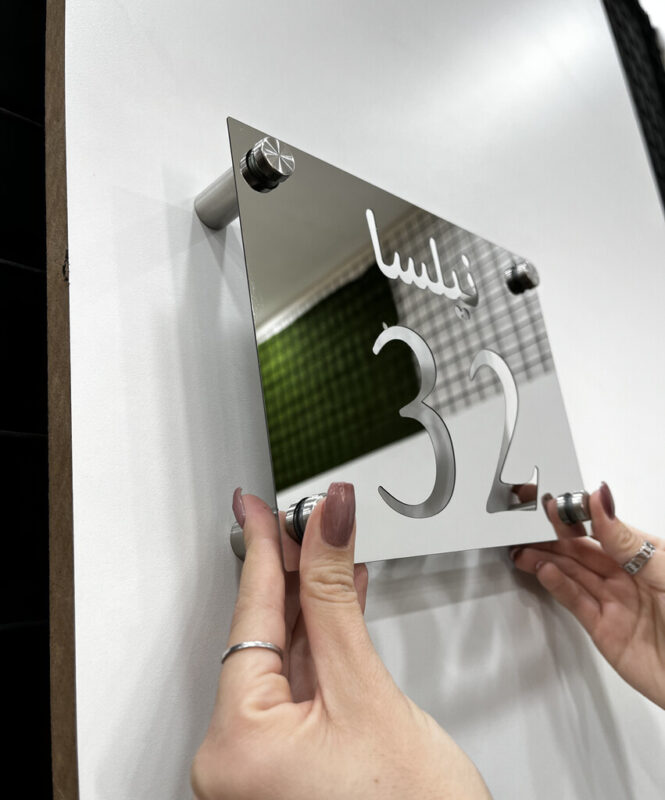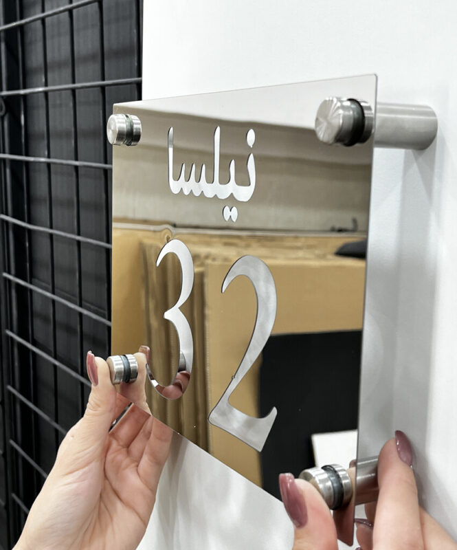 - ✨ قابلیت حک و برش لیزر اعداد و نام:در روی این محصول منحصر به فرد میتوانید شماره واحد، نام و نام خانوادگی یا حتی نام شرکت خود را به صورت برش لیزری خورده و شخصی سازی شده داشته باشید.