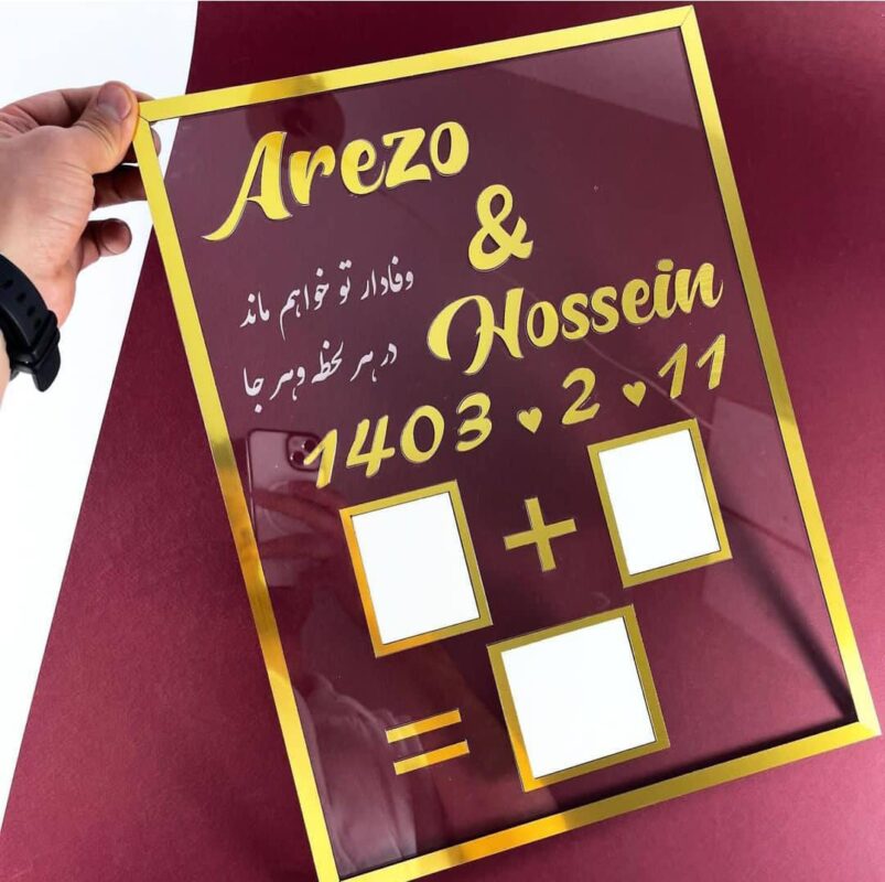 این تابلو دیواری مناسب استفاده در مراسم عقد و عروسی، سالگرد ازدواج و هر رویداد ویژه دیگری است که میخواهید آن را به یادگار نگه دارید. با سفارشیسازی متن و طرح مورد نظر خود، میتوانید این تابلو را به یک اثر هنری شخصی و خاص تبدیل کنید که دقیقاً با سلیقه و سبک شما همخوانی دارد. این تابلو نه تنها یک هدیه بینظیر برای عزیزانتان است، بلکه یادبودی از لحظات ناب و دوستداشتنی زندگیتان نیز خواهد بود. تابلو یاد بود عشق و نامزدی با تلفیق هنر و عشق، نه تنها یک هدیه زیبا بلکه یک یادگاری ماندگار از لحظات ناب زندگیتان است. این تابلو میتواند هر روز به شما یادآوری کند که عشق و تعهدی که در قلبتان جای دارد، همواره زنده و پایدار است.