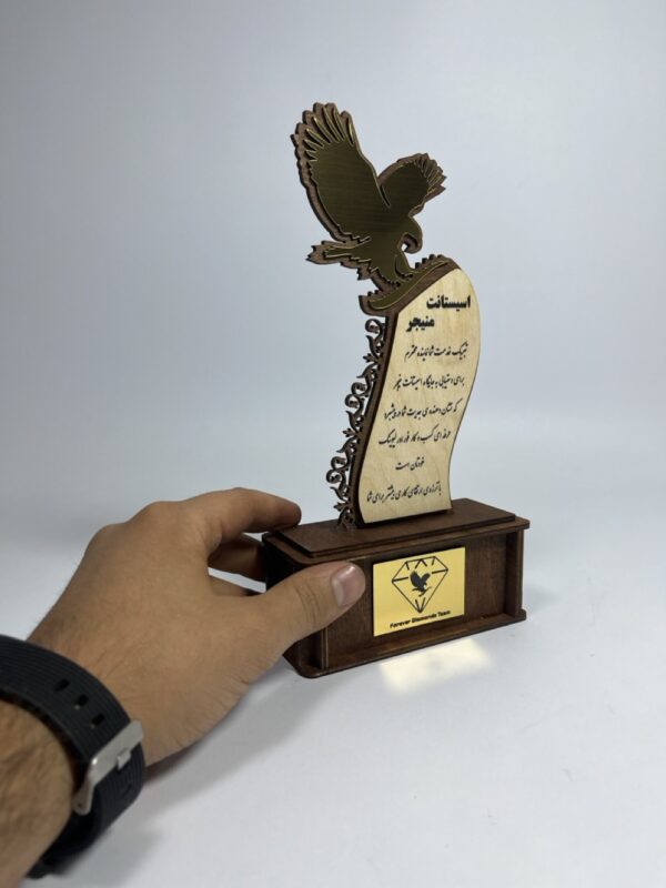 رنگ پس زمینه چوبی زیبای این تندیس افتخار، آن را به یک اثر هنری دکوراتیو تبدیل میکند که میتواند جلوهی زیبایی به هر فضایی ببخشد.