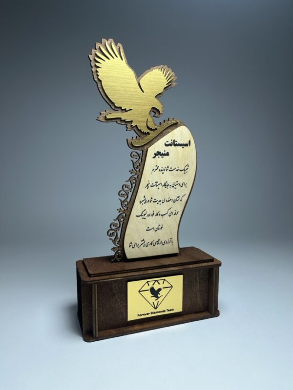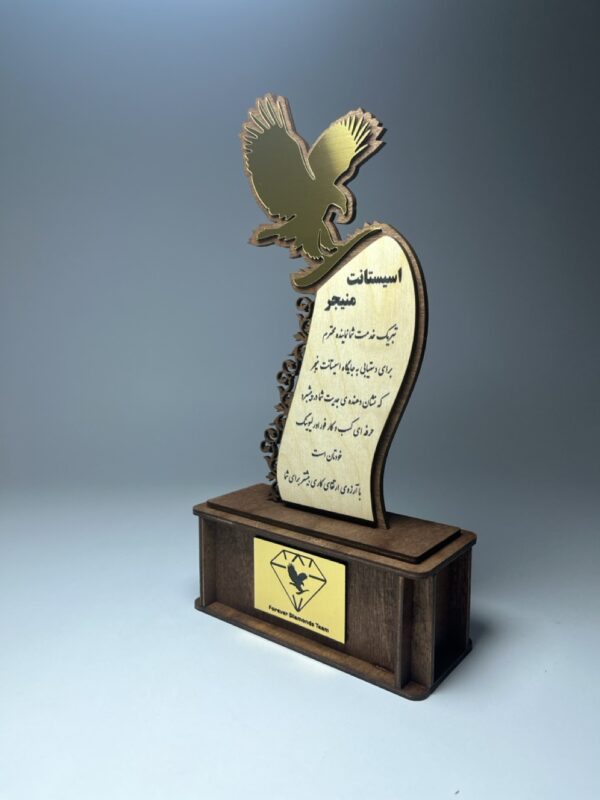 تندیس افتخار شرکتی مدل TH_95386، با استفاده از متریال چوب سه لایه روسی و طراحی مولتی استایل، به عنوان نمادی از افتخار و تقدیر برای کارمندان، همکاران، مدیران و هر کسی که ارزشمندترین تشکر و تقدیر را به او بیان میکنید، درخشان میشود.