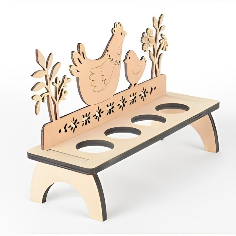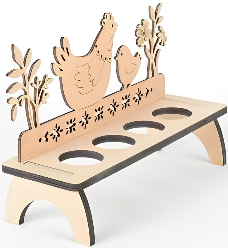 جای تخم مرغ مدل TH_14138 از برش لیزی بر روی چوب تهیه و تولید شده و با المان مرغ، جوجه و گل و گیاه تزیین شده است. با این جای تخم مرغ چوبی می توانید 4 عدد تخم مرغ را در یکجا نگهداری کنید.