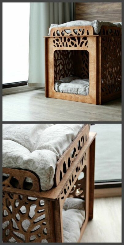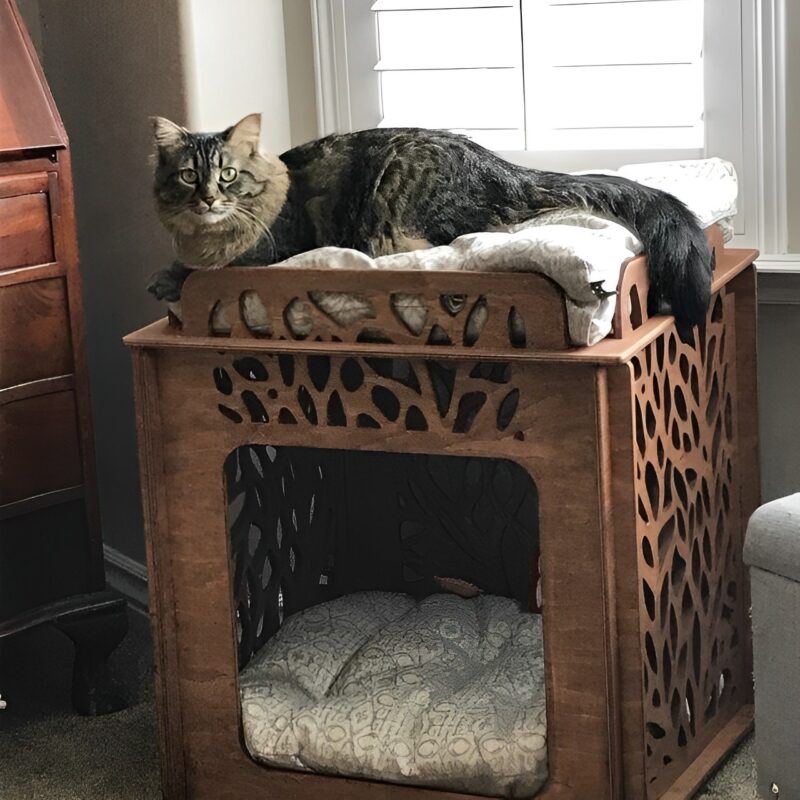 اگر برای گربه و یا سگ کوچک خود به دنبال یک خانه امن و راحت هستید خانه حیوانات مدل TH_51737 را از سایت طرح و هنر تهیه کنید. این خانه حیوانات چوبی می تواند محل بازی و تفریح گربه بازیگوش شما باشد و باعث شود تخلیه انرژی خوبی با این محصول داشته باشد.