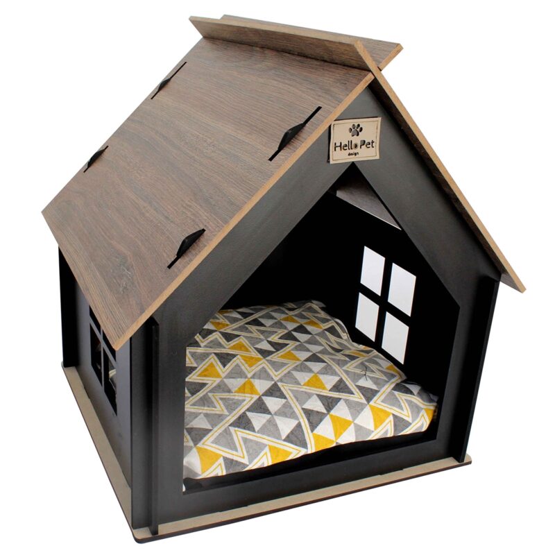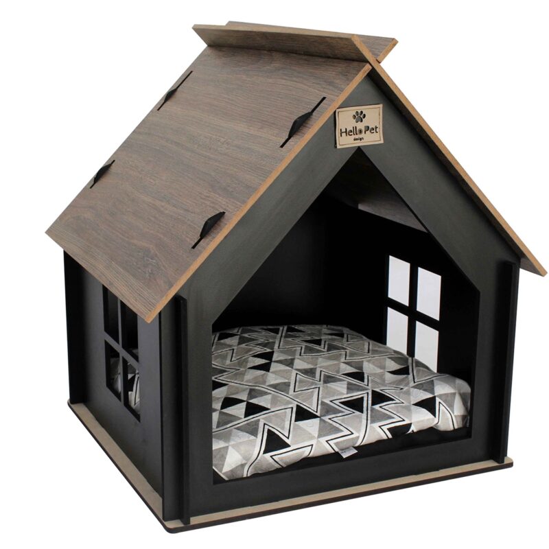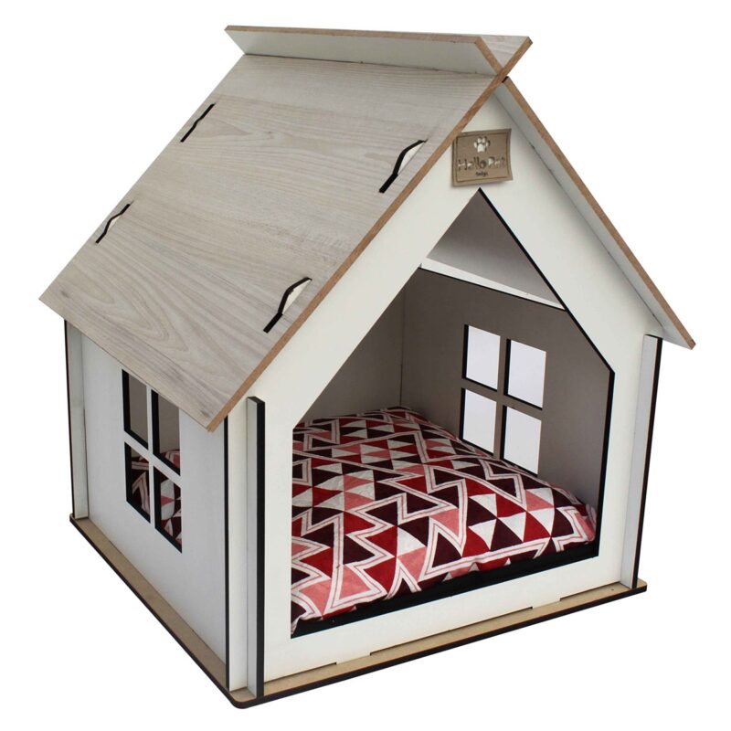 این خانه حیوانات چوبی به صورت کلبه طراحی شده است و دارای دو پنجره است و حیوان تان می تواند به محیط بیرون هم دید داشته باشد. همچنین می توانید در روی پلاک در ورودی این محصول نام حیوان خانگی تان را داشته باشید فقط کافیست در باکس قرار داده شده در سایت نام مورد نظرتان را وارد نمایید تا محصولی که به دست تان می رسد به صورت شخصی سازی شده باشد.
