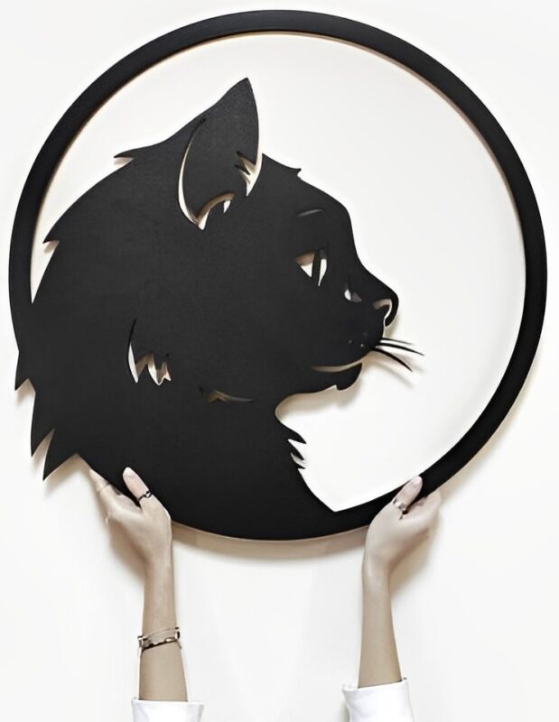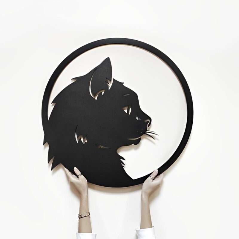 این دیوارکوب در فرم دایره است و نقش مایه گربه در سمت چپ آن دیده می شود و کسانی که به فنگشویی آشنایی دارند متوجه یک یین و یانگ جذاب در این دیوارکوب می شوند.