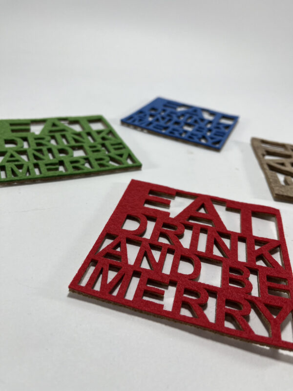 معرفی محصول زیرلیوانی نمدی Eat Drink and Be Merry