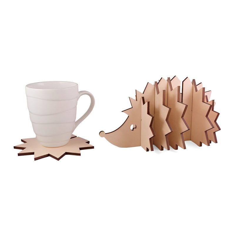 زیر لیوانی طرح جوجه تیغی مدل TH_54316 از فانتزی ترین و در عین حال خلاقانه ترین ظروفی است که در طرح و هنر طراحی و تولید شده است. برای نگهدارنده این زیر لیوانی ها از المان فانتزی جوجه تیغی و برای تیغ های آن از المان شمسه هندسی استفاده شده است که در واقع تیغ های این جوجه تیغی همان زیر لیوانی ها هستند. این شمسه های زیر لیوانی به راحتی از استند جدا می شوند. شما می توانید از این زیر لیوانی برش لیزری در آشپزخانه، کافه و … استفاده کنید.