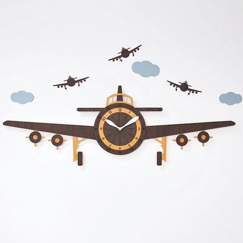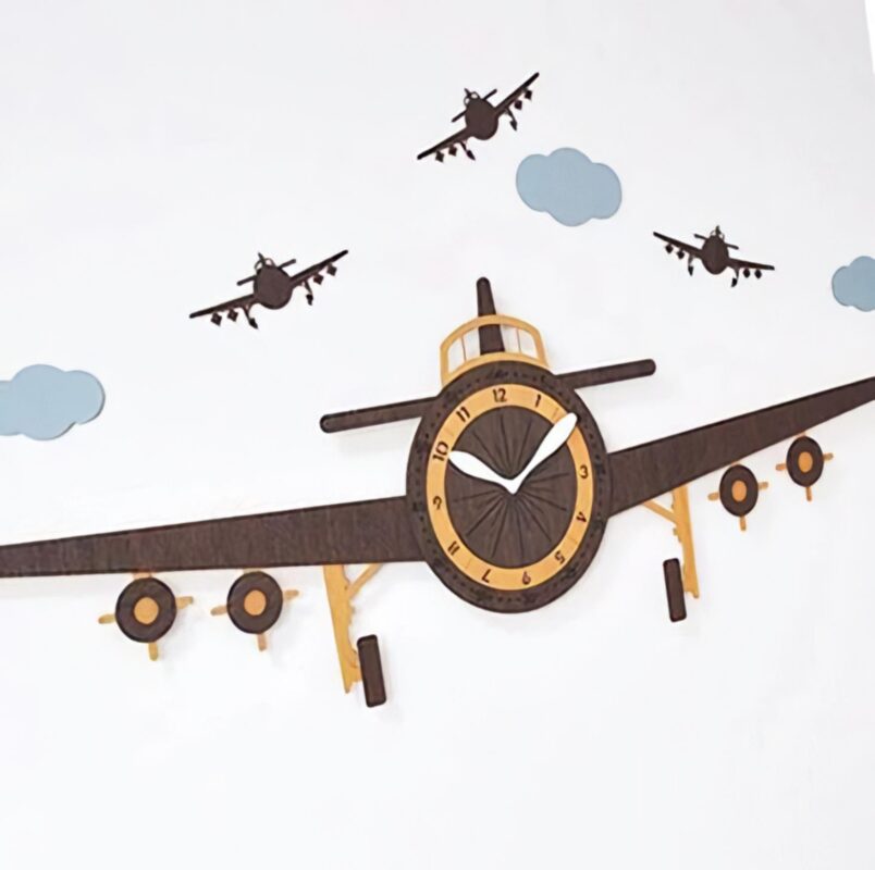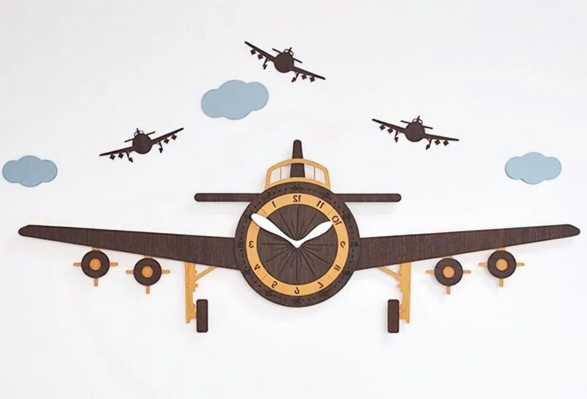 همیشه ساعت یکی از دکوری های کاربردی است که نه تنها در همه ی خانه ها بلکه در تک تک اتاق ها هم دیده میشود . این طرح ساعتی که مشاهده میکنید بیشتر باب میل و سلیقه کودکان است و نگاهشان را جذب میکند برای همین میتوانید برای اتاق کودکان این ساعت طرح هواپیما را سفارش دهید که هم به دکوراسیون اتاق کودک مرتبط باشد هم کودکان از دیدنش لذت ببرند .