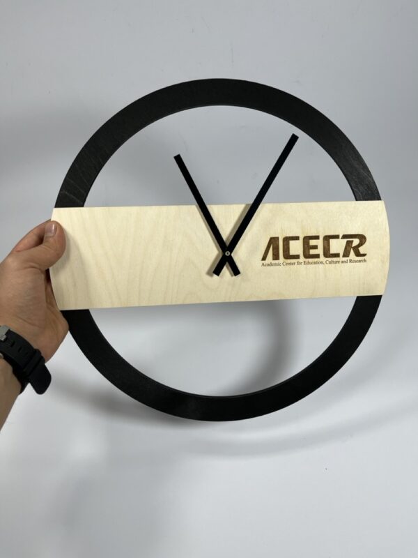 همچنین ما می توانیم عبارت مورد نظرتان را به صورت اختصاصی روی این ساعت دیواری چوبی زیبا حکاکی نماییم.