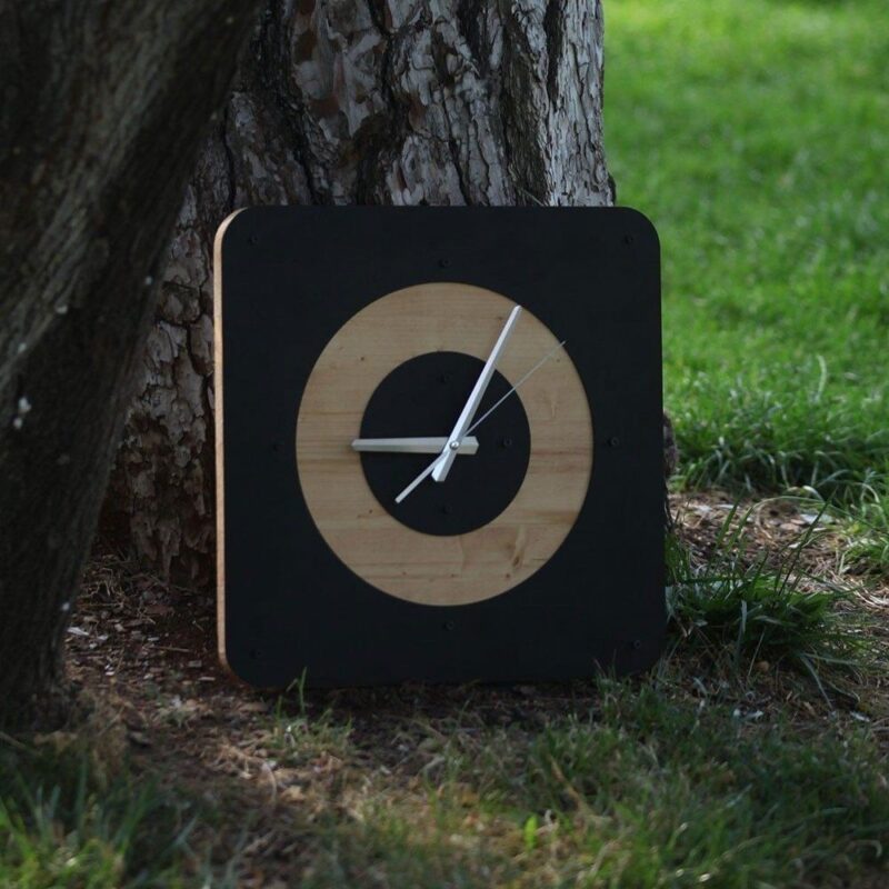 اگر در انتخاب فرم ساعت دیوار تان به مشکل خورده اید و نمی دانید کدام فرم و طرح را انتخاب کنید، پیشنهاد می کنم ساعت دیواری مدل TH_25959 تولید شده در فروشگاه طرح و هنر را از دست ندهید. این ساعت دیواری چوبی در اصل در فرم مربع طراحی شده است و یک قاب گرد که فرم ساعت دایره ای را نشان می دهد در داخل آن قرار دارد، در واقع این محصول به گونه ای طراحی شده است که انگار ساعت دایره را با یک کادر مربع شکل مشکی قاب کرده اند. ترکیب دو طرح مربع و دایره زیبایی خاصی به این محصول بخشیده است.