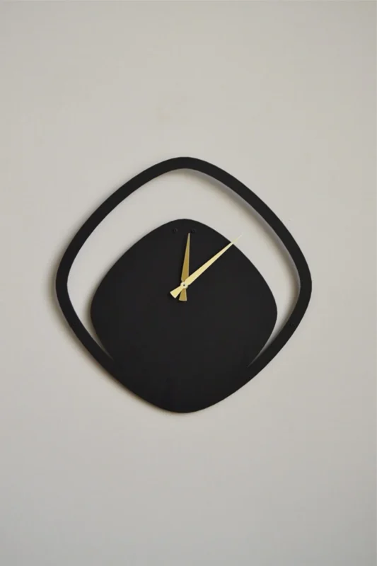 این ساعت دیواری به رنگ مشکی و در فرم لوزی با گوشه های نرم طراحی شده است. هیچ عددی در روی این ساعت دیواری طراحی نشده تا مدرن و مینیمال بودن این محصول بیشتر شود.