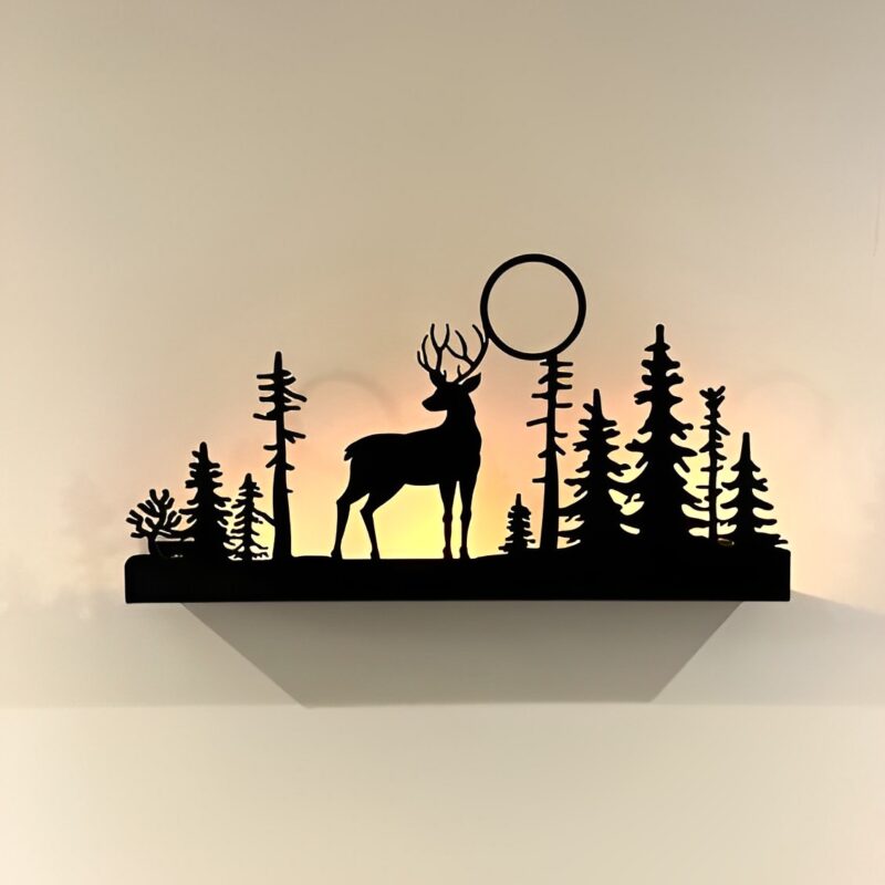 این شبخواب طرح طبیعت چوبی در فرم مستطیل طراحی شده و با المان های گوزن شاخ دار و جنگل کاج طراحی و تزیین شده است. نوری که برای این شبخواب استفاده شده است یک نور لایت است.