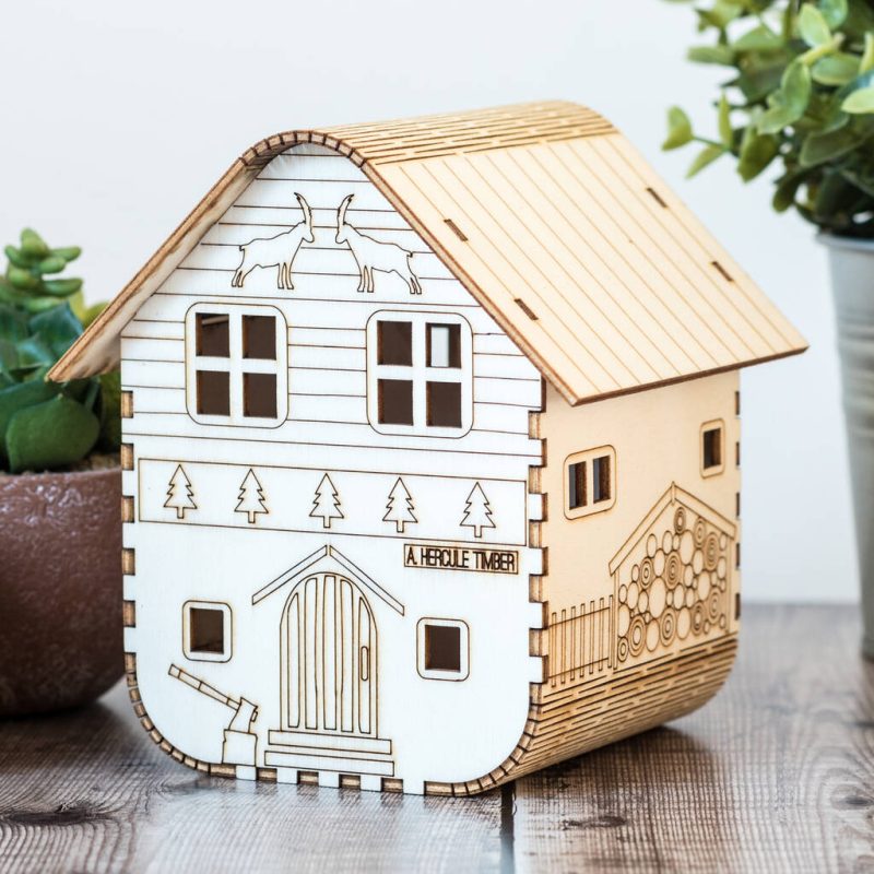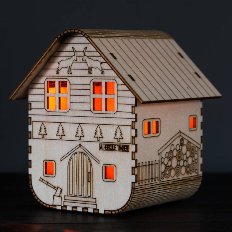 محصولی ساده و کاربردی که میتوانید با استفاده از آن در اتاق کودک خود در شب نور کافی ایجاد کنید تا کودک شما راحت استراحت کند و میتوانید با آن به گذشته سفر کنید یاد کلبه های چوبی قدیمی بیافتید در ساخت این محصول از برش لیزر و ام دی اف سه میلی متری استفاده شده