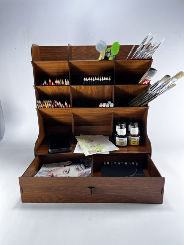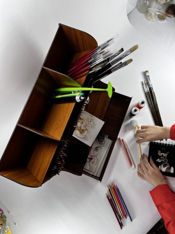 به نظرم دیگر زمانش رسیده که به تمام کار هایمان یک نظم خاص ببخشیم و به تمام جزئیات توجه لازم را داشته باشیم . برای مثال هنوز لوازم تحریرهایمان یا روی میز پخش هستند یا داخل یک کشو بهم ریخته و همیشه تایم زیادی باید دنبال وسیله ی مورد نظرمان بگردیم . این شلف زیبا مشکل شمارا به راحتی حل میکند چون برای همه ی لوازم تحریرتان فضای مورد نظر را ایجاد میکند تا نه شلوغ و بهم ریخته باشند نه گم بشوند.