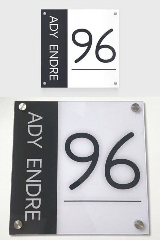 این پلاک از پلکسی مشکی و سفید ساخته شده و دارای طراحی مدرن و خوانا است. لبههای صاف و صیقلی شده این محصول باعث میشود جلوهای حرفهای و لوکس داشته باشد. همچنین، با استفاده از اسپیسرهای فلزی، جلوهای معلق و برجسته روی دیوار ایجاد میشود.