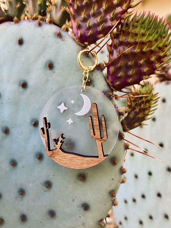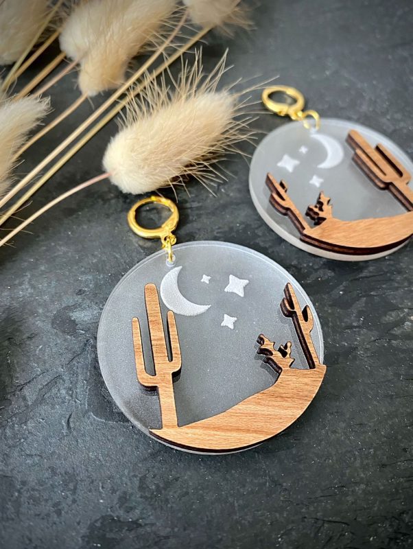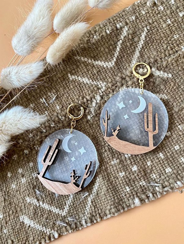 این گوشواره چوبی منحصر به فرد یادآور شب های زیبای کویر مرنجاب و کویر لوت است. اگر سفری به دل کویر داشته اید، حتما این گوشواره آن خاطرات را برای تان زنده خواهد کرد.🥰