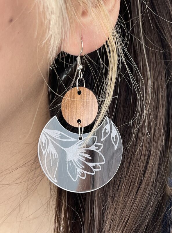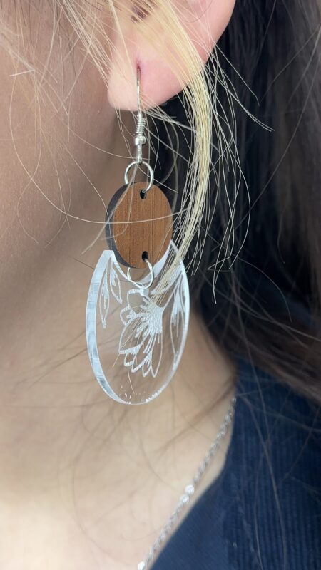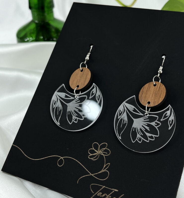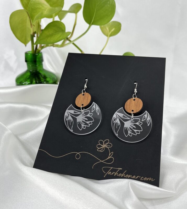 🎨 متریال با کیفیت: در این گوشواره از متریال پلکسی با کیفیت بالا و چوب ام دی اف استفاده شده است، که آن را بسیار با دوام و شیک میسازد.