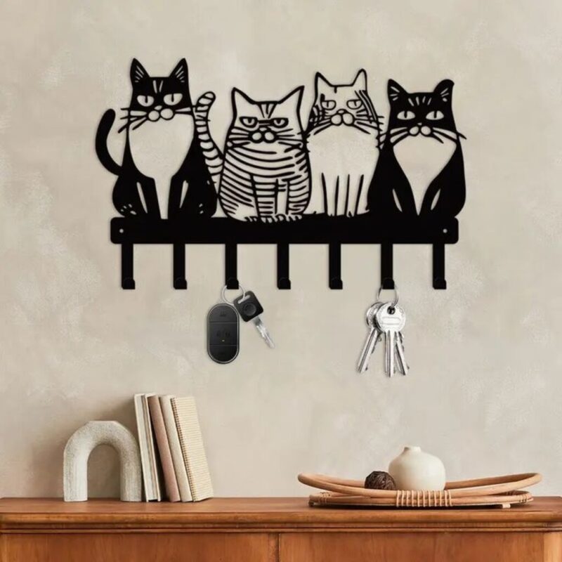 آویز کلید دیواری طرح گربه ها یک انتخاب دوستداشتنی و کاربردی برای نظم دادن به کلیدها و همینطور زیباتر کردن فضای خونهتون هست 🐱🔑. این آویز با طراحی فانتزی چهار گربه بامزه، هم یک اکسسوری دکوراتیو محسوب میشه و هم وسیلهای کاربردی برای همیشه جلوی چشم بودن کلیدها و وسایل کوچک آویزنی.