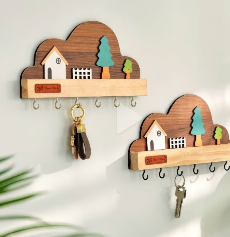 آویز کلید چوبی طرح روستایی مدل TH_42885 آویز کلید چوبی طرح روستایی مدل TH_42885
